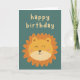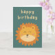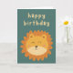 Le devant de la carte comporte un lion mignon et un texte qui dit « Joyeux Anniversaire »