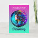Jolie femme avec bleu, turquoise, bleu, jaune et rouge coloré art de l'air fait dans une ambiance mystique éthérée surréaliste. Citation inspirante, "N'arrêtez jamais de rêver."