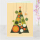 Cette carte de vœux de Noël présente une illustration unique de style moderne du milieu du siècle d'un arbre de Noël et d'ornements.