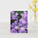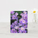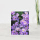 Carte de voeux pliée avec photo de fleur sauvage de maîtres violets. Message vide.