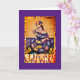 Ce design de carte présente une photo d'une dame en habit vibrant avec un maquillage squelettique et des fleurs traditionnelles dans ses cheveux en fêtant la tradition de la "Journée des Morts" de Dia de los Muertos.