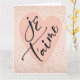 Dites je t'aime avec cette carte de vœux de la Saint-Valentin ou d'anniversaire mettant en vedette un graphique écrit à la main de la phrase française "Je t'aime". Un cœur et des pois de confettis complètent le sentiment.