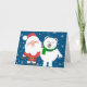 Une image mignonne du Père Noël et de son ami ours polaire avec des flocons de neige en arrière-plan, est présentée sur cette carte de vœux de vacances. L'intérieur de la carte indique : « Nous vous souhaitons un joyeux Noël et une bonne année ! ». Cela en fait une excellente carte pour envoyer vos vœux de Noël à vos amis !