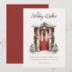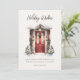 Carte de vœux à plat avec un script moderne "Vœux de vacances" et une image de porte d'entrée décorée de verdure de vacances aquarelle avec un espace supplémentaire au dos pour un message personnel.