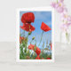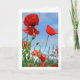 Cette jolie carte de voeux fleurie présente une photo originale de pavots rouges vibrants contre un ciel bleu. Certains des coquelicots sont en pleine floraison, d'autres viennent juste dans les bourgeons. La carte serait appropriée pour presque toutes les occasions.