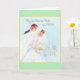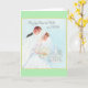Carte de voeux vintage / Retro Mariage. Jolie mariée et mariée avec l'église dans l'arrière - plan! Que Dieu Bénisse L'Épouse Et La Pièce !