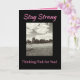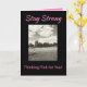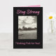 Exprimez vos sincères vœux à une survivante du cancer du sein avec un message d'espoir "Restez forte". La carte noire et grise audacieuse avec des touches de rose a une image inspirante d'un enfant faisant voler un cerf-volant par une journée ensoleillée. Le verset positif de foi, d'espoir et d'amour à l'intérieur enverra vos pensées de soutien et de soins.