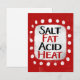"Salt Fat Acid Heat" est un design de texte amusant avec une forme d'accent blanc entourée de points blancs texturés.