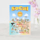 Cette carte de voeux est un dessin spectaculaire de la Californie du Sud - Père Noël Barbara, Los Angeles, Anaheim, Riverside, Palm Springs, San Diego et El Centro plus grands parcs et les villes mexicaines de Tijuana, Tecate et Mexicali. Cette scène pleine de charme a tout - un surfeur pend dix pendant qu'un épaulard saute de l'eau, un couple de plage musclé à flex pour impressionner, des animaux zoo attendent les touristes, un taureau se brise en butin, et bien plus encore...