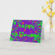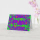 Carte de voeux avec un arrière - plan violet et vert tourbillonnant parsemé d'étoiles orange magiques et brillantes et les mots 'Happy Halloween' écrit en vert vif. Un design personnalisable violet, vert et orange pour vous permettre d'ajouter vos propres textes, images et idées. Le texte peut facilement être modifié à l'aide du modèle fourni ou cliquez sur le bouton "Customiser" pour effectuer d'autres modifications. Enveloppe correspondante et timbre postal disponible. Créé à l'aide de techniques numériques par Jess Perry.