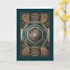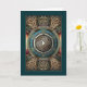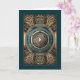 Le design central est un très ancien appelé "Triskelion" - une spirale à trois bras. Au Moyen Age, une variante de ce motif a été adoptée comme symbole de l'île de Man, qui se trouve entre la Grande-Bretagne et l'Irlande au milieu de la mer d'Irlande. L'île était d'une importance stratégique considérable à l'époque, puisqu'une marine basée là-bas pouvait dominer le passage entre ces deux îles. De nos jours, il semble surtout être un endroit agréable pour prendre des vacances. Aux alentours du triskelion se trouvent une variété de motifs en spirale, de fretwork, de bêtes saisissantes et de bordures de nouage dans un design général qui rappelle un morceau de bijoux. Sélectionnez "Customisez-le" à droite, et vous pouvez ajouter votre propre message à l'intérieur de la carte.