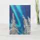 Ces beaux arbres couverts de neige avec les aurores boréales derrière eux.