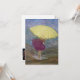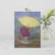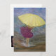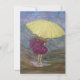 Cette carte de voeux très joyeuse "jour de pluie" peut être donnée pour diverses occasions. L'optimisme de cette image représente une jeune femme, tenant un parapluie jaune vif et se fracturant volontairement dans l'eau de pluie. Une bonne carte de note personnelle, une carte d'encouragement, ou penser à vous saluer.