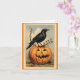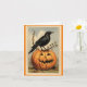 Cette carte de voeux d'Halloween présente une photo magnifique et vintage d'un corbeau assis sur un citrouille. A l'intérieur de la carte on peut lire : "A la volée des corbeaux, passez un Halloween heureux !". Une carte de voeux mignonne pour envoyer famille et amis pour Halloween.