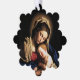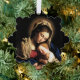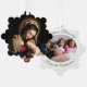 Le design présente l'image de la Vierge Marie avec Christ Enfant à l'avant, tandis que l'inverse affiche la photo que vous fournissez encerclée par votre salutation de Noël en écriture verte.