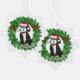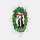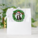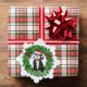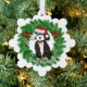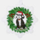 Caricature personnalisée Noir et Blanc Bernedoodle Chiot portant un chapeau de Père Noël personnalisé, arc rouge avec cloches de jingle, enchevêtré dans les lumières de Noël. Fête de noël la frontière de la couronne. Ajoutez le nom de votre bernedoodle à cet adorable ornement de flocon de neige en papier de vacances !