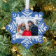 Blue Snowflake Joyeux Noël Famille Carte d'ornement photo. Flocon de neige blanc et bleu. Ajoutez votre photo, nom et année. Bon souvenir de Noël ou cadeau pour votre famille et vos amis.