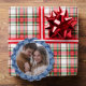 Commémorez votre premier Noël en couple engagé avec ce magnifique ornement photo avec un classique motif poinsettia dessiné à la main bleu et blanc avec une photo sur un côté et votre texte sur le dos.
