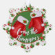 Carte unique, classique, mignonne et décorative des fêtes de Noël avec des mitaines rouges Père Noël sur un classique Holly baies et feuille motif arrière - plan et classique Happy Holidays citent le texte. Avec place pour customiser ou personnaliser avec nom de famille, salutation, ou souhait de votre choix.