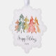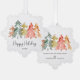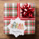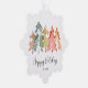 Carte de voeux de Noël simple et élégante qui peut aussi être utilisée comme un tag cadeau et un ornement d'arbre en papier. L'avant est ornée d'une aquarelle abstraite de pins en vert sauge muet, rouge, or et orange et "Happy Holidays" dans un script élégant. Sur le dos personnalisez votre salutation et ajoutez votre nom dans la typographie moderne.