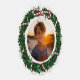 Une carte de vacances super amusante et unique qui est aussi un ornement d'arbre de Noël - ou pendre de n'importe où. Le côté avant présente votre photo personnalisée mise en évidence par une couronne botanique amusante. Le côté arrière comprend votre salutation personnalisée, lettre/note et vos noms. Festif, amusant et classique - vos amis et votre famille apprécieront vraiment cette carte de vacances.