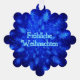 Un essaim de flocons de neige fractaux bleus. Le texte allemand "Froliche Weihnachten" apparaît en bleu et blanc éclatant. Ajoutez votre propre texte supplémentaire à l'envers.