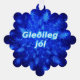Un essaim de flocons de neige fractaux bleus. Le texte islandais "Gleðileg jól" (Joyeux Noël) apparaît en bleu et blanc éclatant. Ajoutez votre propre texte supplémentaire à l'envers.