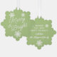 Cette carte d'ornement de Noël est un moyen parfait d'envoyer des salutations saisonnières et des voeux de vacances à votre famille et vos amis. La carte a un arrière - plan vintage vert sauge qui crée un contraste apaisant et élégant avec les étoiles blanches festives et les flocons de neige qui la décorent. La carte a un design simple et classique qui est aussi tendance et attrayant. La carte a de l'espace sur le dos où vous pouvez la customiser ou la personnaliser avec votre nom de famille ou votre nom individuel, ce qui le rend plus spécial et unique.