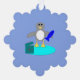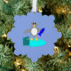 Cette magnifique carte ornementale de Noël fait une belle décoration festive qui peut être accroché sur l'arbre ou comme une carte de Noël conventionnelle. Il peut également être utilisé comme balise actuelle. Le design est composé d'un mignon petit manchot gris et blanc avec des yeux noirs beady et un bec et des pieds jaunes. Le pingouin tient un gros poisson bleu avec une nageoire et se tient sur un morceau de glace bleu pâle. Un présent ouvert à côté du pingouin est accompagné d'un ruban festif. Il y a du texte personnalisé à l'arrière pour que vous puissiez le personnaliser en fonction de l'utilisation que vous souhaitez.