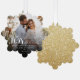 This modern and elegant holiday/christmas wedding announcement ornament card features the word 'Joyous' in a mix of classic serif and whimsical calligraphy script with the couple's monogram embedded within a unique diamond ring overlaying a full bleed photo. The back of the card has a faux gold glitter image background with white snow dots pattern.