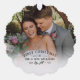 Un ornement photo célébrant votre premier Noël en tant que Mr & Mrs personnalisé avec photo, nom de famille, et l'année avec une jolie branche de mistletoe. Premier ornement photo de Noël personnalisé avec des photos mariages. Premier Noël comme un ornement photo marié avec une jolie brindille de mauvais goût.