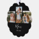 Black and white Mom Established script photo design black ornament card. Excellent gift for mom on Mother's day or for a new mom or for yourself. Customize with three of your favorite photos and add in the year(s) of your child's or children's birth. Elegant and simple, it will certainly put a smile on the face of the special woman in mind. What a wonderful keepsake for Mother's Day and every other day after that.