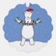 Cette belle illustration de Helen McCartney Designs montre un ours polaire moelleux portant un casquette de Noël. L'ours tient une bannière portant le nom de votre choix.