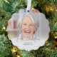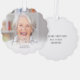 Premier Noël Retraite Photo Overlay Nom Année Script Ornement. Votre premier Noël marié est très spécial, et cette ornement et carte tout-en-un pratique, a votre photo et premier Noël dans un script informel sur le devant avec votre nom et votre année, et vos salutations sur le dos, prêts pour vos destinataires à accrocher à leur arbre. Facile de personnaliser le reste du texte et de remplacer l'exemple de photo par votre propre préféré.