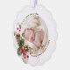 Le premier Noël du Bébé magnifique enveloppé de lumières dorées et saint contre un arrière - plan rose roux faisant un cadeau unique et gardez saké pour tous vos meilleurs souhaits pendant la saison des fêtes. Personnalisez facilement avec votre nom et photo préférée de votre choix.