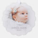 Parfait pour les nouveaux parents, cet ornement de Noël dispose de votre propre photo et texte personnalisé. Modifiez le texte et téléchargez votre photo directement sur la page du produit! Le devant de l'ornement sera votre photo téléchargée avec un nom et une année personnalisés, et le dos sera votre choix de texte autour d'une couronne de vacances. Le salut dit actuellement "Le premier Noël du bébé" et peut être customisé, également sur la page du produit. Cette carte ornementale comprend un effet brumeux autour des bords de la photo; essayez-le vous-même et téléchargez votre propre photo pour voir l'effet.