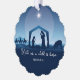 This beautiful blue drawing of the nativity scene is a gorgeous religious Christmas ornament card for a devout family. Unto us a child is born. Send holiday blessings with this Christian card ornament.
