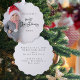 Baby First Christmas Photo Overlay Script Ornament. Le premier Noël de votre bébé est très spécial, et cette carte et ornement tout-en-un pratique, a une photo de votre nouvelle arrivée, nom et année, avec le premier Noël dans un script stylé, et votre message et vos noms sur le dos, prêt pour vos destinataires à suspendre de leur arbre. Facile de personnaliser le reste du texte et de remplacer l'exemple de photo par votre propre préféré.