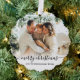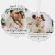 Script minimaliste moderne 2 Photo Joyeux Script de Noël Carte d'ornement de Noël. Ce modèle festif, simple minimaliste, fantasque deux photos de vacances carte de voeux de vacances dispose "Joyeux Noël" texte de bienvenue qui est écrit dans une main lettré tourbillonnant swash-tail police calligraphie script photo superposition en noir et blanc. À l'arrière avec votre modèle de message de bienvenue avec un petit doodle de coeur et un modèle photo. Jolie carte de voeux pour votre famille et vos amis pendant la période de Noël.