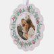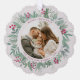 Celebrate the season with this beautiful Christmas ornament card, featuring hand-painted winter wreath in a variety of green and sage tones accented with red berries that elegantly frame your family photo on the front. The back showcases a full photo that covers the entire round ornament shape, creating a stunning double-sided design.