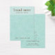 Écouter la carte d'affichage du produit avec votre marque et logo sur les tons bleu aqua.