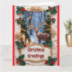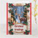 Lovely picture of a deer in the woods with trees, candles and lights, is featured on this Christmas greeting card. Front of the card reads, "Christmas Greetings" and inside of the card reads, "May the beauty of the season fill your heart and home with Joy. Merry Christmas and Happy New Year". A pretty greeting card to give family and friends for the Holidays!