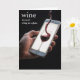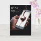 Un smartphone d'une main présente un verre de vin, avec du vin rouge qui semble tomber d'en haut, créant un mélange surréaliste de technologie et de réalisme pour un anniversaire.