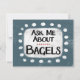 "Ask Me About Bagels" est un design de texte amusant avec une forme d'accent blanc entourée de points blancs texturés.