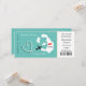 Une invitation de mariage amusante mais élégante dans le style d'une carte d'embarquement/billet pour les couples qui se marient à l'étranger sur la belle île grecque de Santorin, représentée en silhouette blanche sur fond bleu sarcelle avec de doux cœurs rouges, silhouette d'avion et forme de cœur tourbillonnant. Le verso offre beaucoup d'espace pour des détails supplémentaires et une photo personnelle.