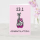 Une paire de chaussures d'entraînement roses et blanches attachées par les dentelles, sur un arrière - plan rose pâle et les mots '13.1 Félicitations'.