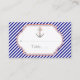 Bleu marine, rayures blanches et carte d'ancrage mariage nautique place. Un design motif rayé et élégant avec des rayures en diagonale bleu marine, une ancre avec un coeur et une corde d'amour orange corail et votre texte dans un cadre corallien bleu. Contemporain mais avec un look vintage dans un sens. Vous pouvez modifier la couleur arrière - plan et la couleur du texte en choisissant parmi plus de 200 couleurs à partir du graphique en couleurs Zazzle. Ce design élégant est un modèle entièrement personnalisable et fait partie d'un ensemble mariage parfait pour un mariage nautique d'été ou de plage.