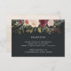 Conçue pour se coordonner avec notre collection de mariage floral aquarelle Moonlight Garden, cette élégante carte d'encart de réception botanique présente un spray de fleurs de chrysanthème et de rose peintes à l'aquarelle dans de riches teintes automnales de marsala, de prune bordeaux, de rose blush et de crème, surmontant vos détails de réception de mariage en blanc. Une élégante carte d'encart d'invitation de mariage en noir chic pour les mariages d'automne ou d'hiver.