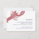 La carte d'encart de réception de style côtier présente les détails de votre réception de mariage en bleu marine, accentuée d'une illustration de homard de style vintage dans un rouge atténué et délavé. Conçue pour correspondre à nos invitations et accessoires de mariage au homard Harborside.