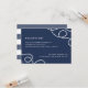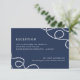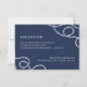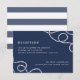 Élégante carte d'encart de réception de mariage côtier qui présente les détails de votre réception en blanc sur fond bleu marine, accentués aux coins de boucles de corde tressée nautique. Le verso des cartes comporte de larges rayures nautiques.